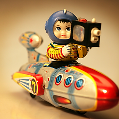 Toy space rocket – A child riding a rocket toy, pointing to SEO agencies and reaching new heights.